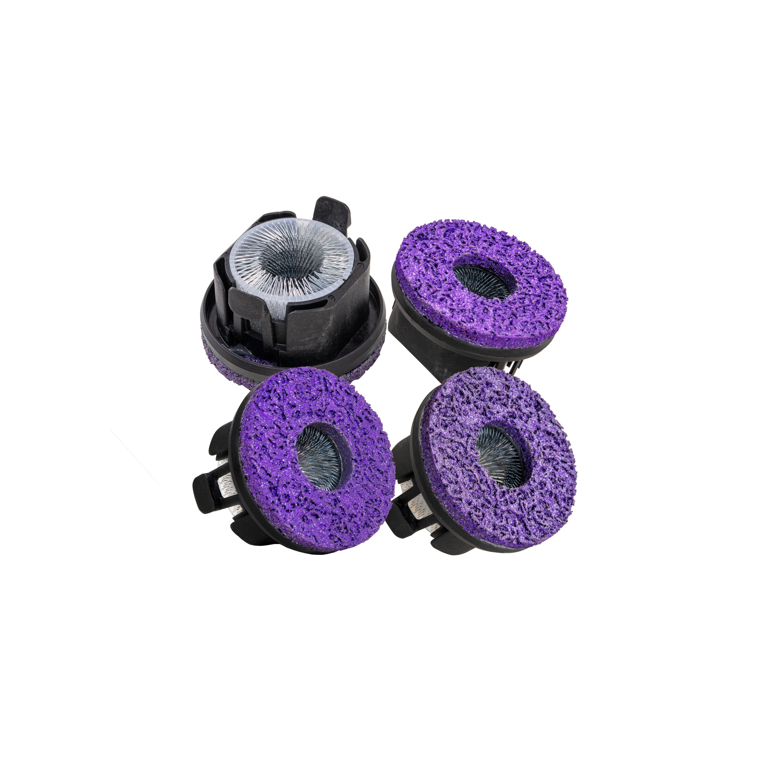 ESCO 4-Pack – ESCO HD Commercial Stud & Hub All-in-One Cleaning System Cleaning Pads (Model 50176) are designed for use with the ESCO Model 50172, these 2-in-1 cleaning pads feature a heavy-duty purple abrasive that removes rust and debris from hub and wheel mating surfaces. Stainless-steel tines clean studs thoroughly without causing damage.